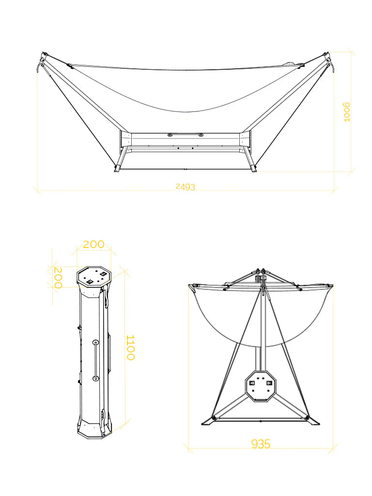 • „Einseilsystem" für einfachen Aufbau in 5 Schritten