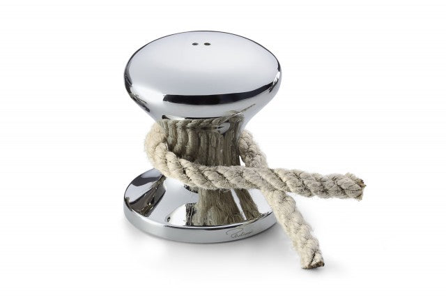 Die HAMBURGER STREUER für Salz und Pfeffer garantieren stilsicher maritime Anlegemanöver bei Tisch. In ihrer Form einem Schiffspoller nachempfunden, liegen sie beim Würzen mit griffiger Taille und verspielt umgelegtem Tau sicher in der Hand. Silber glänzend für Salz und Schwarz schimmernd für Pfeffer, die doppelte Aufmerksamkeit verspricht einen souverän hanseatischen Auftritt.