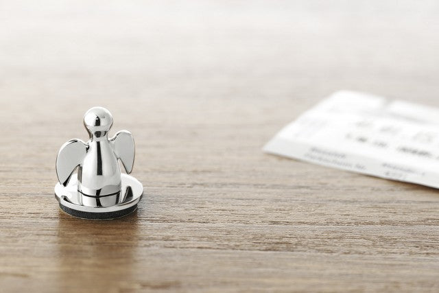 Engel ANGELO steht nicht nur jedem Autofahrer auf dem Armaturenbrett schützend zur Seite, sondern hat auch eine ganz alltägliche Mission: Parkscheine, Ausweise oder Notizzettel lassen sich einfach und nach außen sichtbar zwischen ANGELO und seinen magnetischen Sockel klemmen.