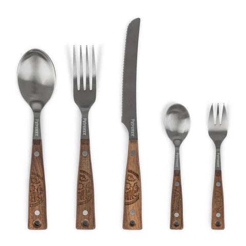 Das Petromax Camping Besteck Set aus Edelstahl ist der ideale Begleiter für Mahlzeiten unter freiem Himmel. Ob beim Camping, im Van oder am Lagerfeuer – das 5-teilige Set mit Messer, Gabel, Esslöffel, Teelöffel und Snack-Gabel liegt dank durchgehendem Edelstahlkern angenehm in der Hand und überzeugt durch seine robuste Verarbeitung.