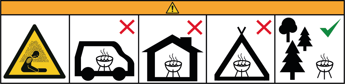 WARNUNGEN:— Nicht in geschlossenen Räumen verwenden- Kinder in sicherem Abstand halten — Nach dem Entzünden des Grills keine zusätzlichen Anzündhilfen einsetzen.