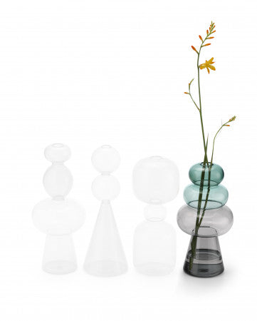 Ziemlich frech und gleichzeitig auch ein wenig ulkig kommen die vier einzigartigen Glasvasen aus durchgefärbtem Borosilikatglas daher. Die Serie CURIOSA von PHILIPPI besticht mit ungesehenen Form- und Farbkombinationen in abwechselnd kugelförmigem und konischem Design. Jede Vase ist mundgeblasen steht für einen ganz eigenen Charakter. Die lustige Viererbande lässt sich prima kombinieren, ist selbstverständlich aber auch einzeln zu haben. Eine stilvolle Tischdekoration, die nicht mehr benötigt, als einen schlichten Zweig oder eine einzelne Blume – im Grunde geht’s als Skulptur aber auch mal ohne. So oder so: CURIOSA verleiht dem heimatlichen Ambiente eine ordentliche Portion Persönlichkeit.