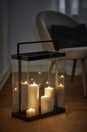 Was die Laterne von einem Windlicht unterscheidet, ist im Wesentlichen der Henkel zum Hängen oder der Griff zum Transportieren. Letztere Aufgabe erfüllt LUXOR mit Bravour. Die voluminöse Konstruktion sorgt für Standsicherheit und nimmt gleich mehrere Altarkerzen auf, die für allerlei Erleuchtung an langen Sommerabenden zuständig ist. Eine herzlich warme Einladung als Deko-Objekt vor der Haustür oder als Lichtspender auf der Terrasse oder dem Balkon. Das gehärtete Sicherheitsglas lässt garantiert nichts anbrennen, ebenso wenig wie der geradlinige Look im Architekten-Style.