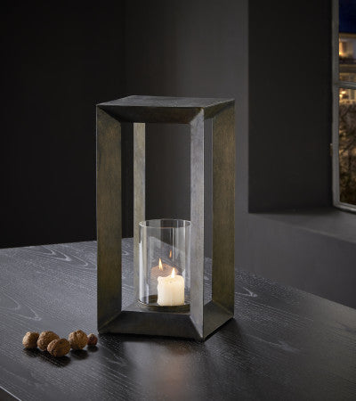 Mit seiner geometrischen Form und dem minimalistischen Look vereint ESTATE Form und Funktion in vollendeter Harmonie. Das Licht der Kerze wird von der schützenden Glaswand gleichmäßig reflektiert, während der kantige Rahmen eine kraftvolle Silhouette auf Tisch, Boden oder Fensterbank wirft. Die Kontraste zwischen Glas, Metall und Flamme machen dieses Windlicht zu einem architektonisch inspirierten Deko-Highlight – sowohl für Innenräume als auch geschützte Außenbereiche.