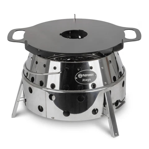 Nachdem das Feuer geschürt ist, kommt die Platte sehr schnell auf Temperatur und garantiert dir so scharfes Anbraten. Dem Atago geht die Energie nicht so schnell aus, denn durch die Aussparung in der Mitte der Atago Grillplatte kannst du einfach Holz oder Kohle nachlegen. Durch ihre flache Ausführung und das steckbare Trägergestell kannst du sie leicht im Auto oder Van verstauen und als vielfältige Koch- und Grillstation für jeden Ausflug in Wald und Flur nutzen. Dank der optimalen Hitzeverteilung gelingt dir ein ideales Garergebnis mühelos und jedes Gericht wird ein Genuss – die Atago-Grillplatte begleitet dich problemlos bei jedem deiner Abenteuer.